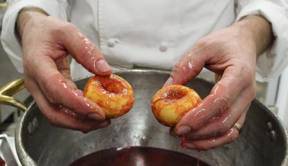 Les Pesche di Prato se composent de deux demi-sphères de pâte briochée trempées dans une sauce à base d’alkermès, recouvertes de sucre et fourrées de crème pâtissière.