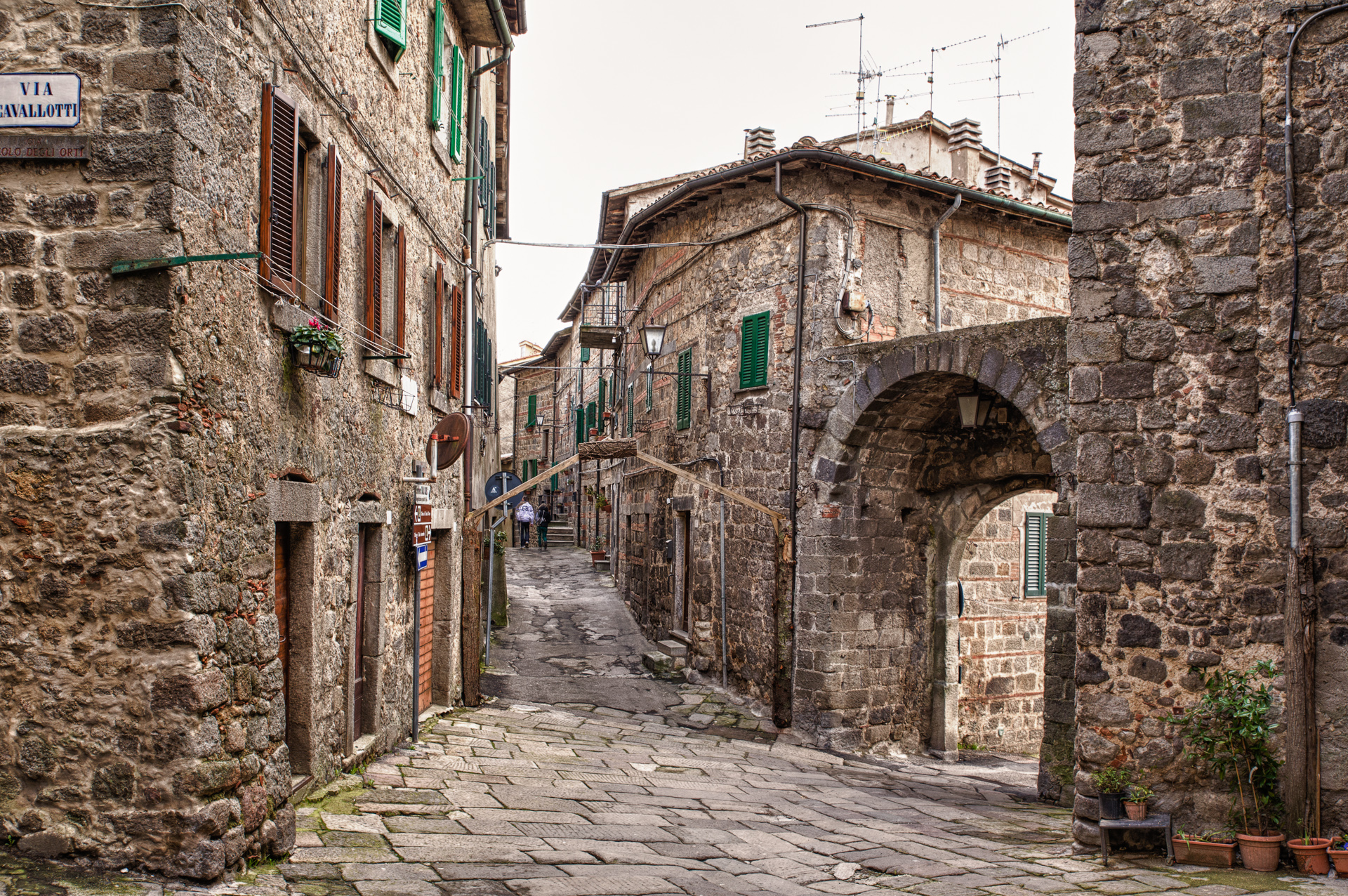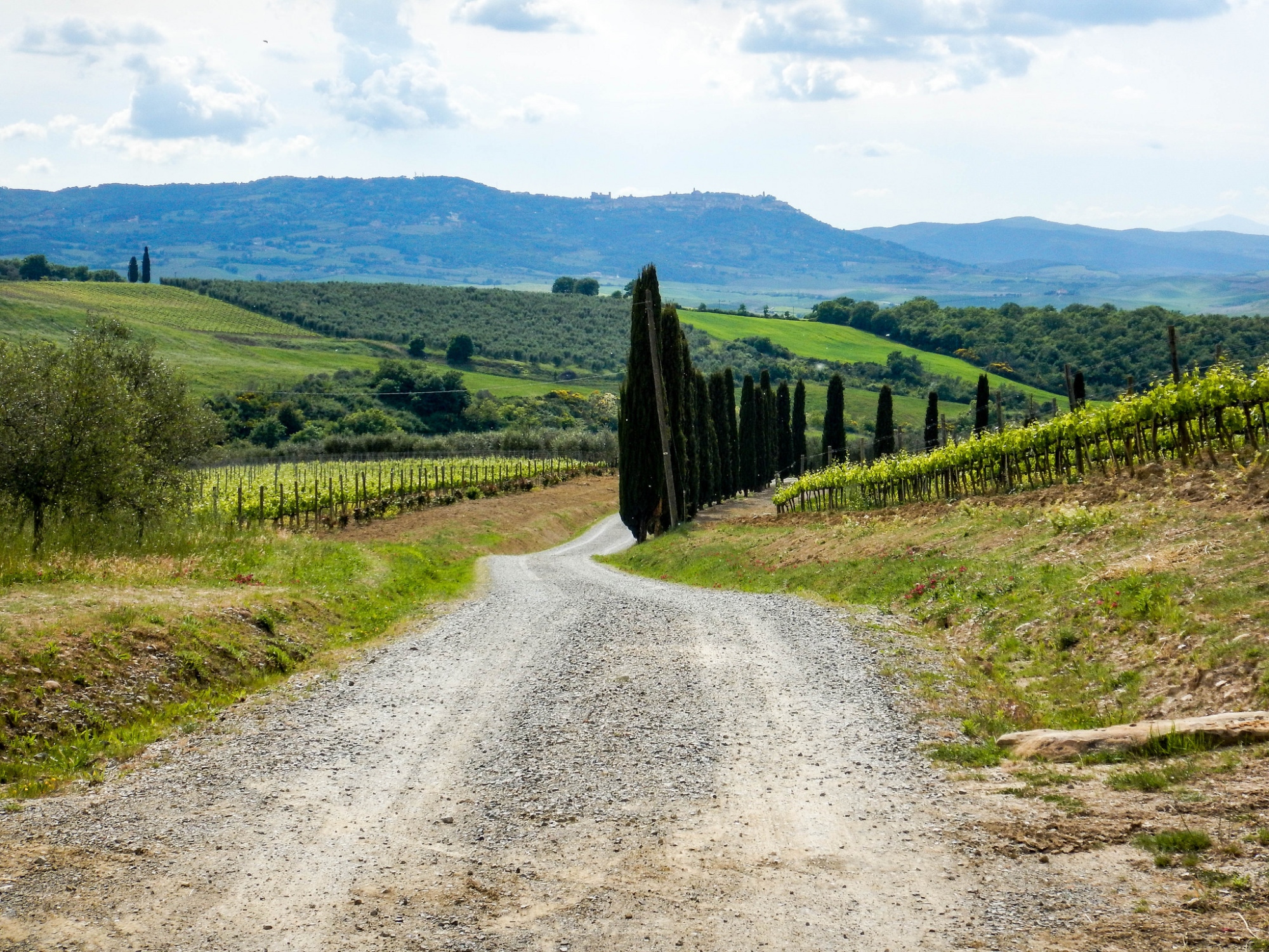 Wenn man dem Hauptweg folgt, kommt man in die Nähe des alten Pulvermagazins; dann nimmt man die Straße, die nach rechts ansteigt, und erreicht nach einigen Steigungen eine Weggabelung: man fährt links weiter und erreicht nach einem kurzen Gefälle die Ebene Piana dei Mercuri. Die betonierte Straße führt weiter bergauf bis zum Landgut Podere della Cipriana, wo man geradeaus weiterfährt; am Ende der Abfahrt nicht die Straße links nehmen, sondern bergauf weiter fahren bis zu einer Weggabelung, wo es rechts über eine Schotterstraße (nicht die folgende Abzweigung nach rechts nehmen) zum Landgut Podere Pozzaroni und auf die Asphaltstraße weiter geht.