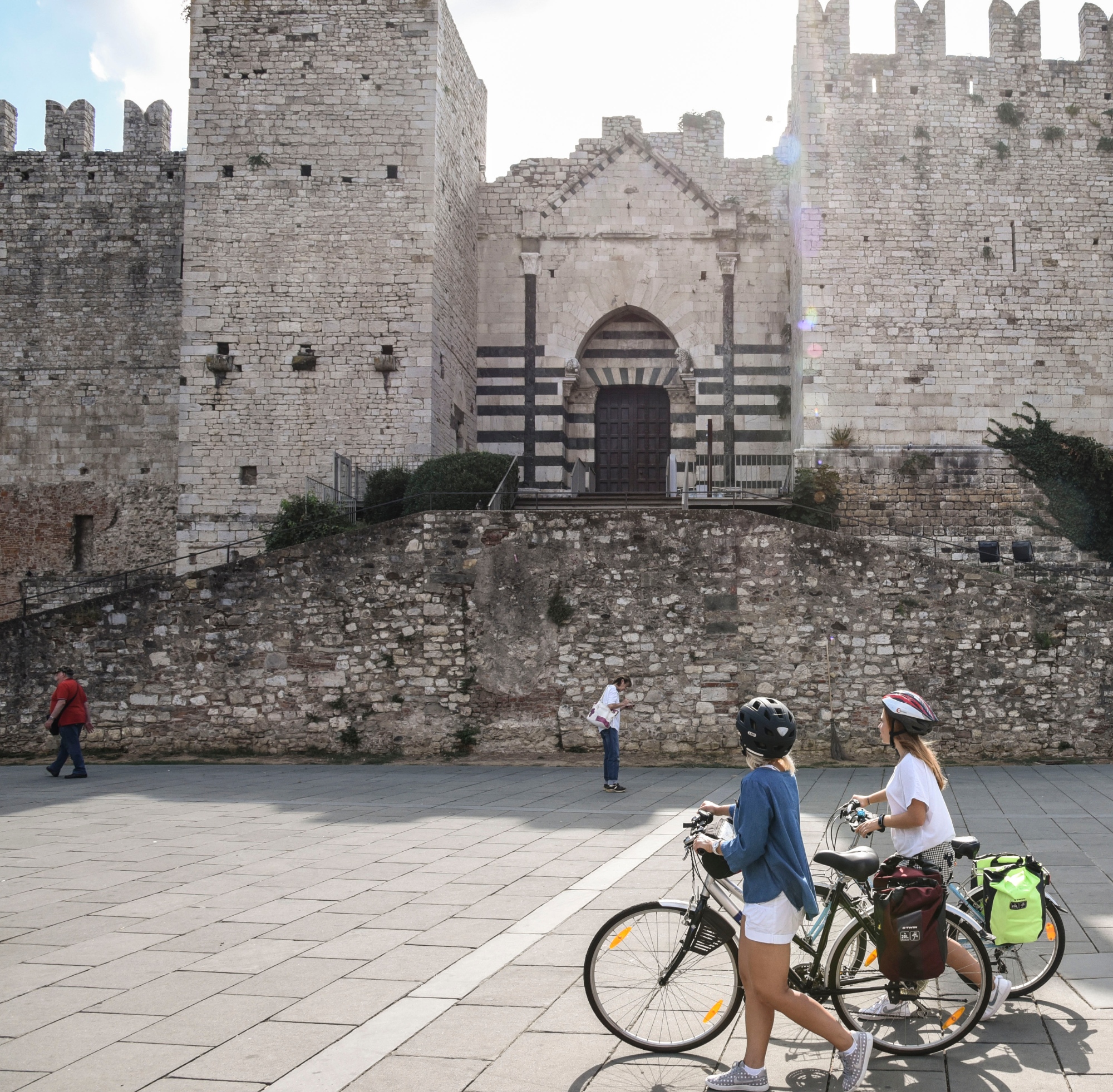 Wenn Sie im Zug mit dem Fahrrad ankommen, können Sie sofort eine Runde im Zentrum drehen und zwischen Kirchen, Gebäuden und mittelalterlichen Türmen herumfahren, um in wenigen Minuten den Dom zu erreichen, den Hüter der Fresken von Filippo Lippi, mit seiner eindrucksvollen Kanzel von Donatello, sowie die wichtigsten Plätze der Stadt. Nehmen Sie sich etwas Zeit für einen kurzen Abstecher in die Wein- und Esskultur und verwöhnen Sie Ihren Gaumen mit zwei unverzichtbaren Spezialitäten: den Prato-Pfirsichen und dem Mandelgebäck. So erfrischt, kann die Fahrt energiegeladen weitergehen und wenn Sie vor der Kaiserburg ankommen, werden Sie von ihrer Pracht fasziniert sein! Dann gelangen Sie zum Museo del Tessuto, dem Stoffmuseum, und zur Piazza San Marco, wo Henry Moores eigenwillige Kunstskulptur Große quadratische Form mit Schnitt Sie zu den kuriosesten Interpretationen verleitet.