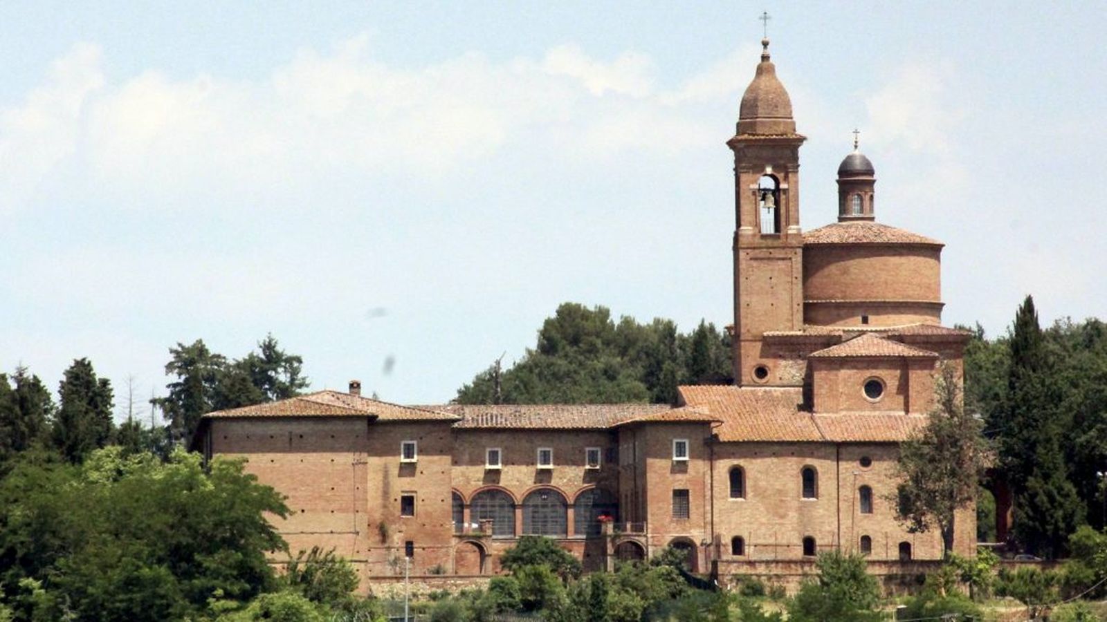 Die Straße führt bergab und dann wieder bergauf auf den Hügel der Capriola, wo wir einen kurzen Abstecher zur Basilica dell'Osservanza machen und einen der schönsten Ausblicke auf die Stadt des Palio genießen können. Bernhardin von Siena, Franziskanerbruder und großer Prediger, wollte dieses Kloster auf einem Hügel errichten lassen, wo Frieden und Stille herrschen. Die 1944 zerbombte und unmittelbar nach dem Krieg wieder aufgebaute Kirche ist von außen schlicht und einfach, während das Innere mit seiner Renaissanceprägung eine wahre Fundgrube für Kunst ist.