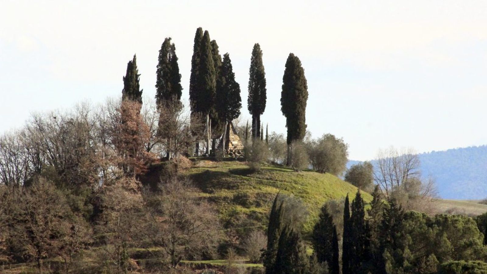 Kurz darauf erreichen wir die SP di Montevarchi und biegen links ab und fahren in stetigem Auf und Ab vorbei an den Orten Ponte a Bozzone und San Giovanni, bis wir Pianella erreichen. Wir überqueren die Brücke über den Fluss Arbia und folgen den Hinweisschildern nach Monteaperti. Bis kurz vor der Ortschaft San Piero in Barca geht es aufwärts und dort erreichen wir die Kammstraße, der wir nach Monteaperti folgen, dem Ort der berühmten Schlacht zwischen den ghibellinischen Sienesen und den florentinischen Guelfen. Auf einer Anhöhe erinnert ein pyramidenförmiger Gedenkstein, umrahmt von Zypressen, an das blutige Ereignis.