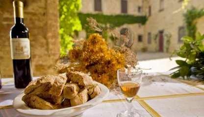 Er passt aber auch zu den Mahlzeiten: Der halbtrockene Vin Santo schmeckt zum frischen Schafskäse Marzolino, der trockene zu Raveggiolo. Ein besonders trockener Vin Santo ist ein interessanter Begleiter der typischen toskanischen Lebercreme.