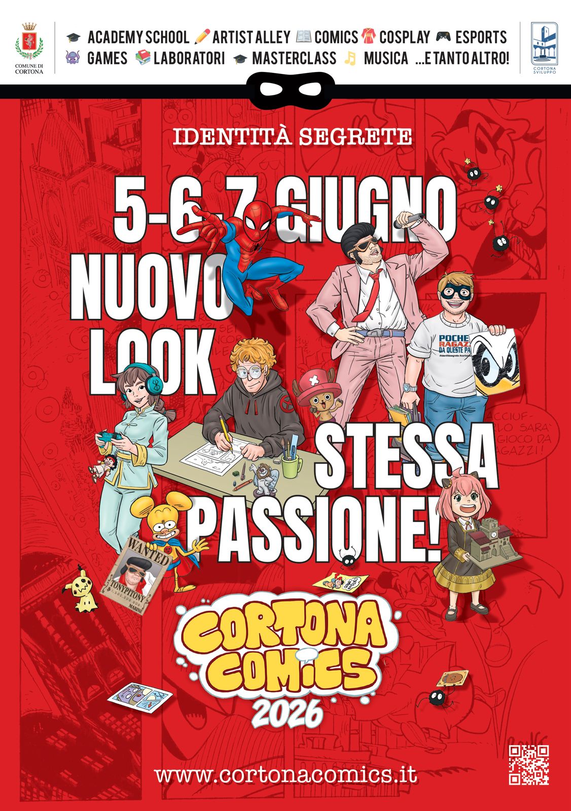 Access to all public areas is free of charge, while selected activities and experiences are available via a daily wristband or full-event pass. Cortona Comics is organised by Cortona Sviluppo in partnership with the Municipality of Cortona.