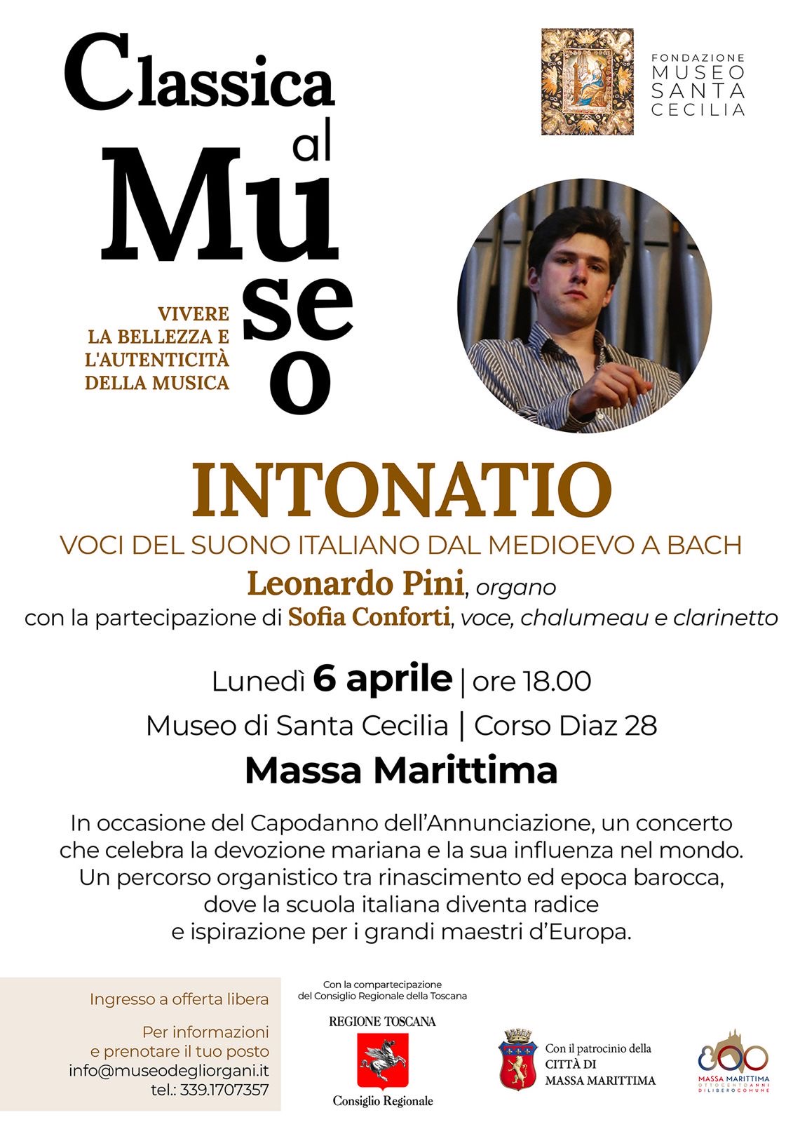 On Monday, April 6 at 6:00 pm, in the spaces of the Museum of Ancient Mechanical Organs in Massa Marittima, the Fondazione Museo Santa Cecilia will inaugurate the 2026 Season of Classical Music at the Museum with Intonatio: Voices of Italian Sound from the Middle Ages to Bach.