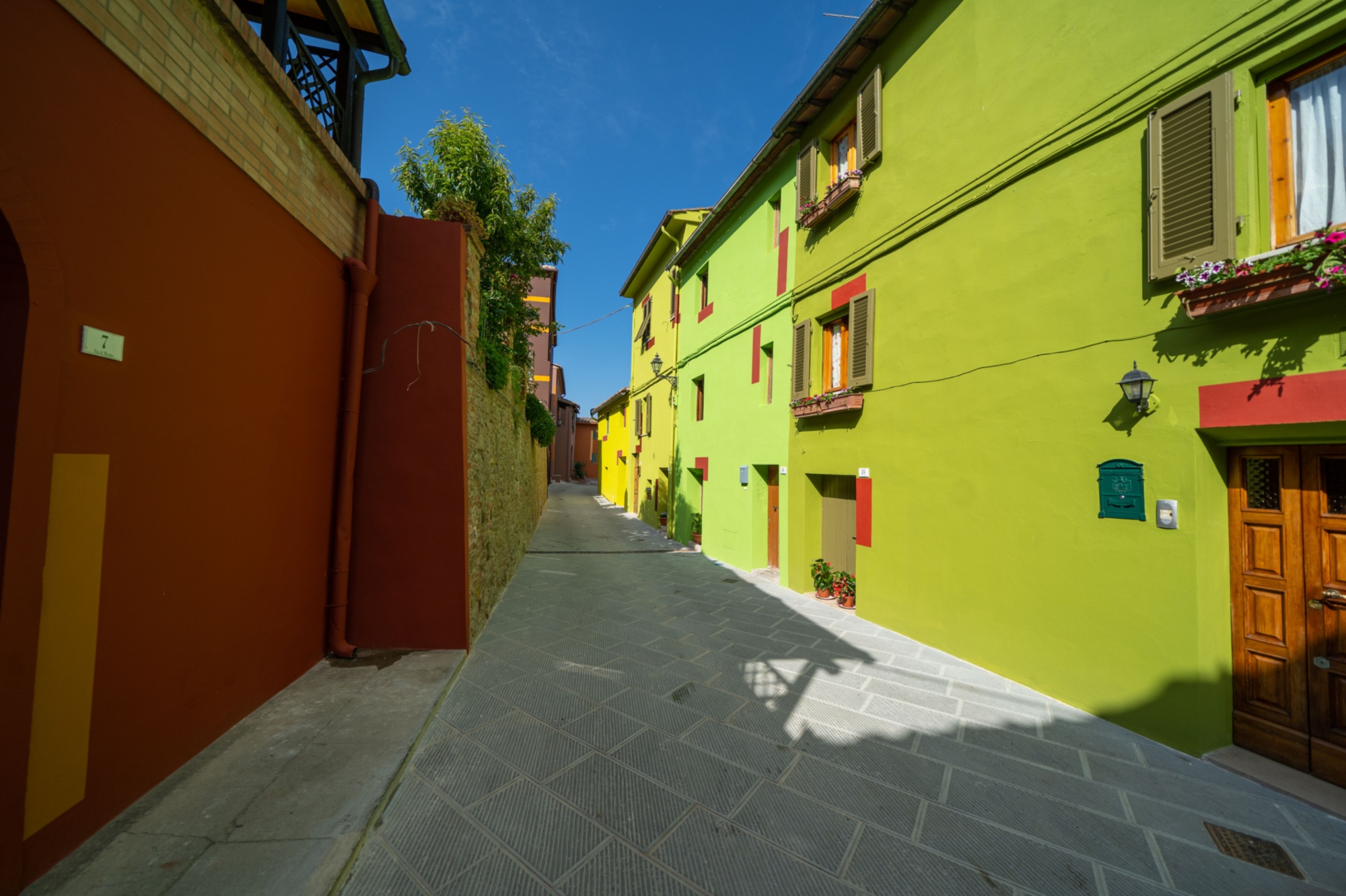 La carretera vuelve a ser de tierra hasta que se une a Via Poggetta, donde giramos a la derecha para llegar a Ghizzano, el pueblo coloreado por el artista David Tremlett y dónde se pueden apreciar otras obras de arte al aire libre. Después de Ghizzano, volvemos a un camino de tierra durante unos diez kilómetros hasta la aldea de Cedri. Continuamos durante unos kilómetros por carreteras asfaltadas con muy poco tráfico, inmersos en la hermosa campiña toscana. En el punto donde una hilera de cipreses bordea la carretera, giramos a la derecha por otro tramo de camino blanco, que nos llevará a Fabbrica y luego continuaremos por asfalto hasta Montecchio. La carretera vuelve a ser de tierra en la última bajada y la última subida que nos llevan de vuelta a Peccioli, nuestro punto de partida.