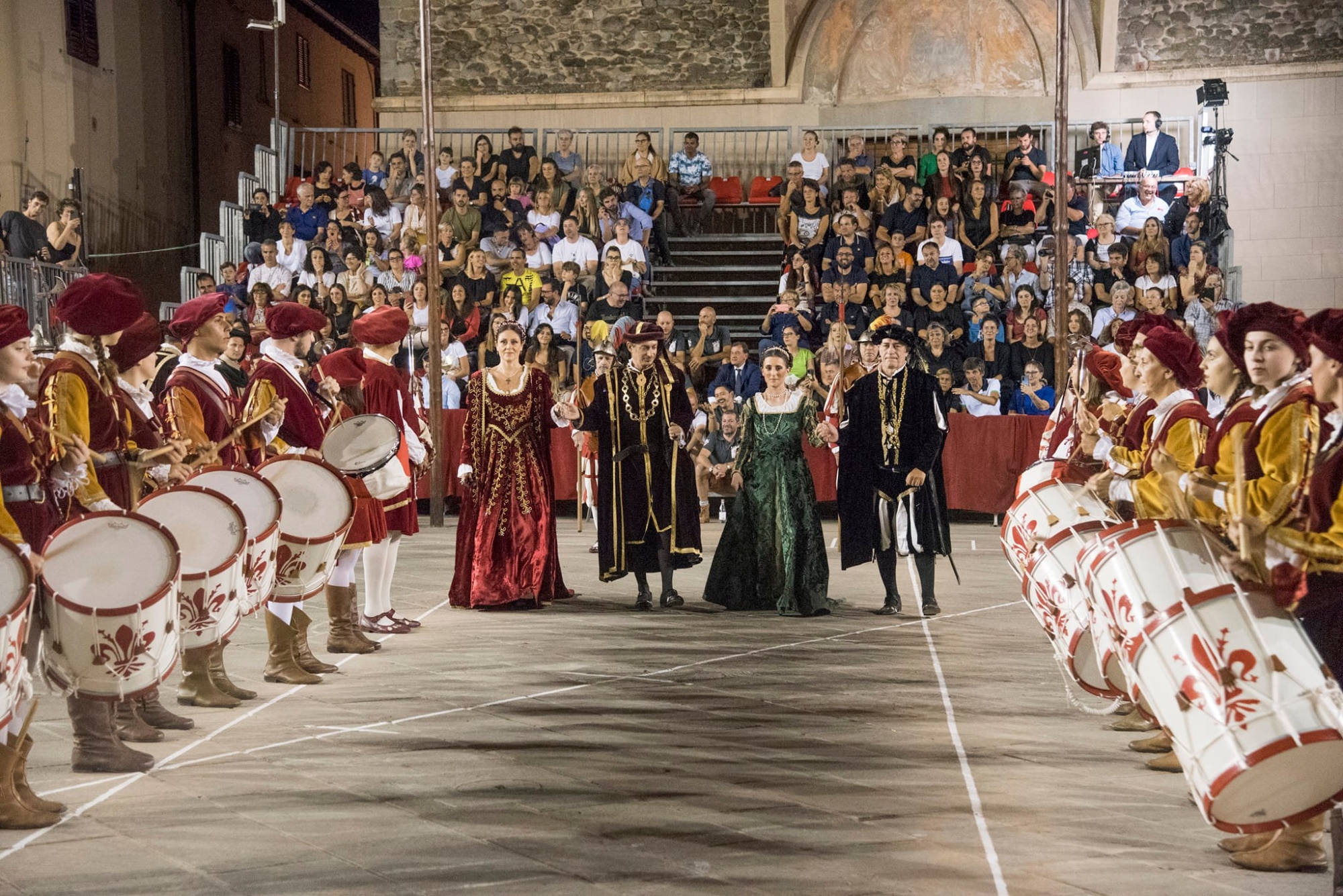L'événement commence dans les premières ombres du soir avec le son de la grosse cloche de la tour crénelée. Le Palazzo dei Vicari ouvre ses portes et le cortège historique commence, composé de centaines de participants qui accompagnent le vicaire sortant à Porta Fiorentina pour accueillir le vicaire entrant.