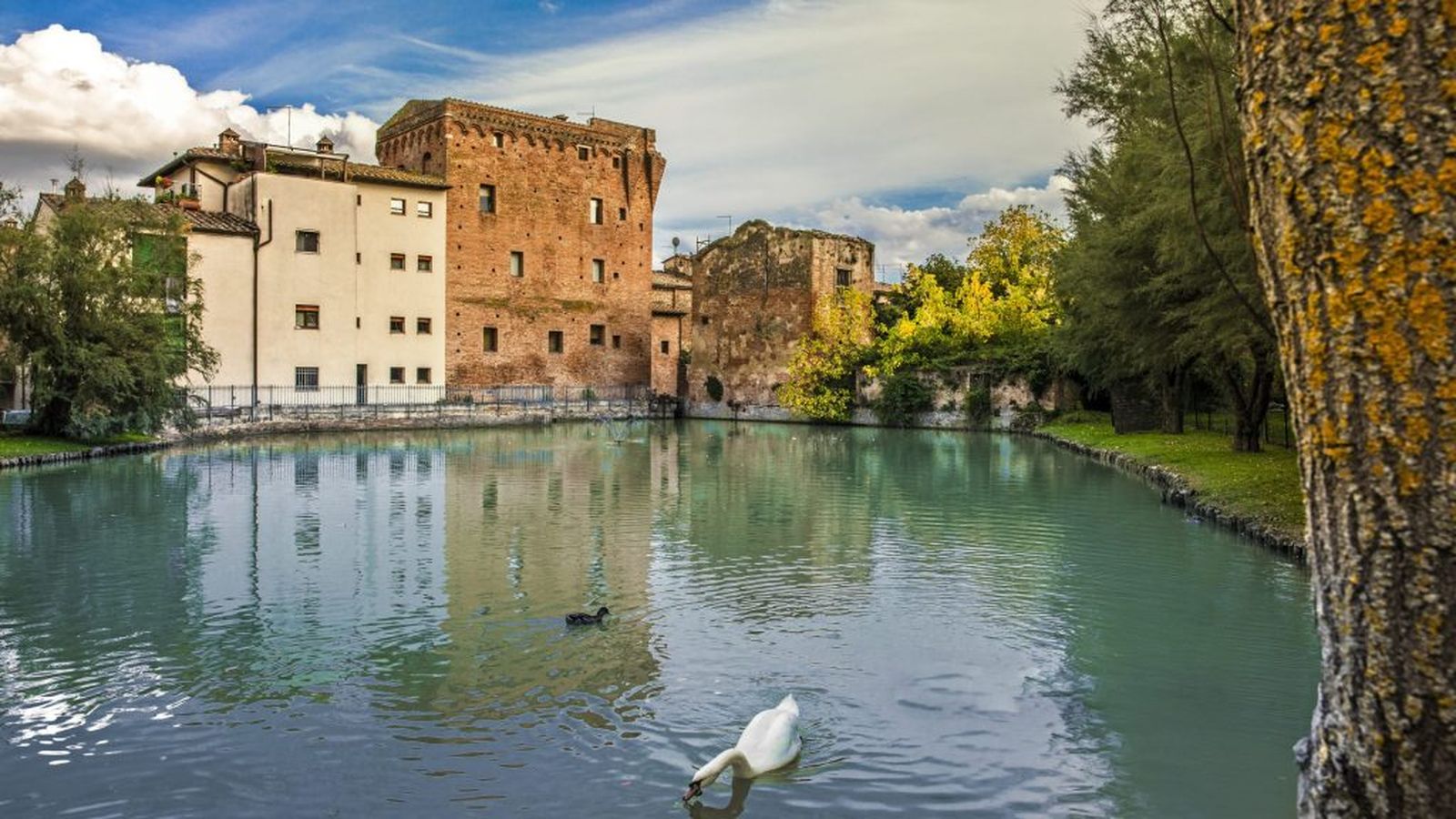 Au fond de la vallée, Monteroni d'Arbia nous attend : ici, nous pourrons faire une halte restauratrice et visiter le célèbre moulin fortifié du XIVe siècle. Juste avant le village, nos yeux remarqueront le Château de San Fabiano. Pour tracer le deuxième côté de notre triangle, nous prenons la Provinciale di Grotti qui nous mènera au village de Radi, sur une route goudronnée avec quelques tronçons assez raides.