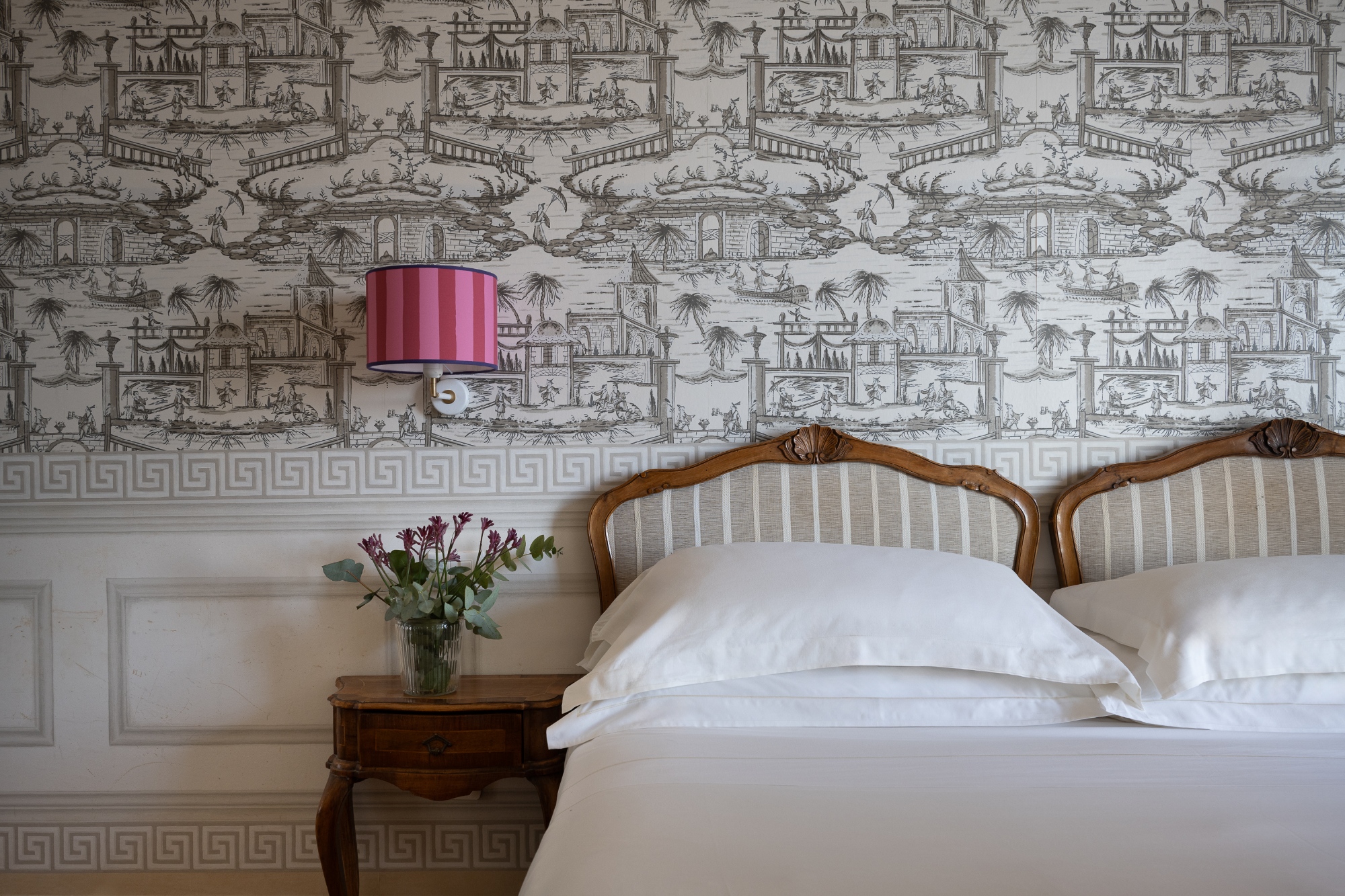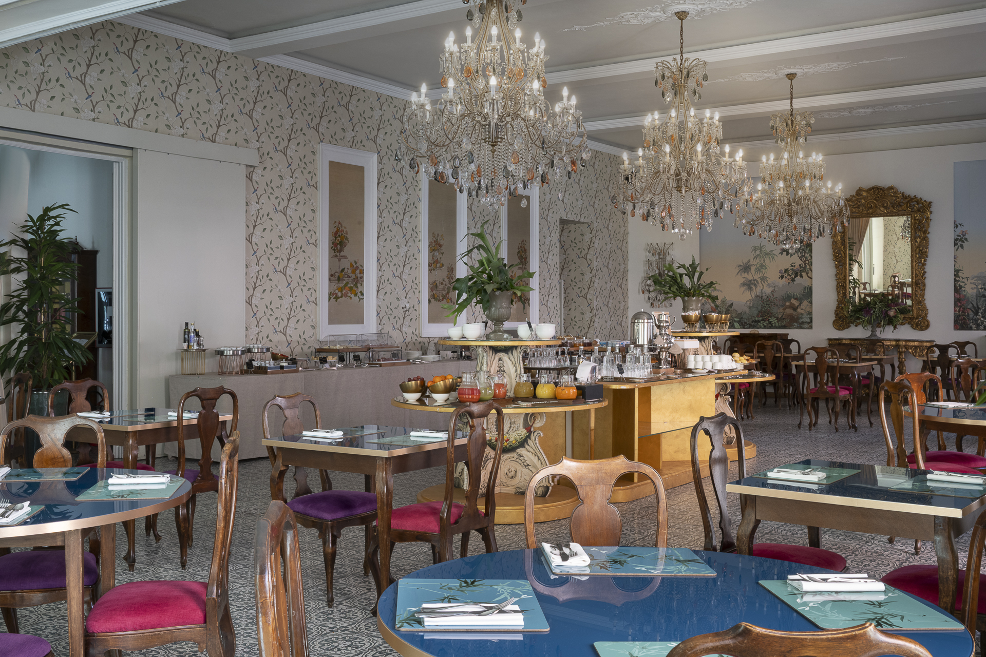 La sala “Belle Epoque” dove viene servita la prima colazione è un esempio di sapiente recupero e conservazione di arredi retrò che uniti all’utilizzo di una preziosa carta da parati creano un’atmosfera d’antan.