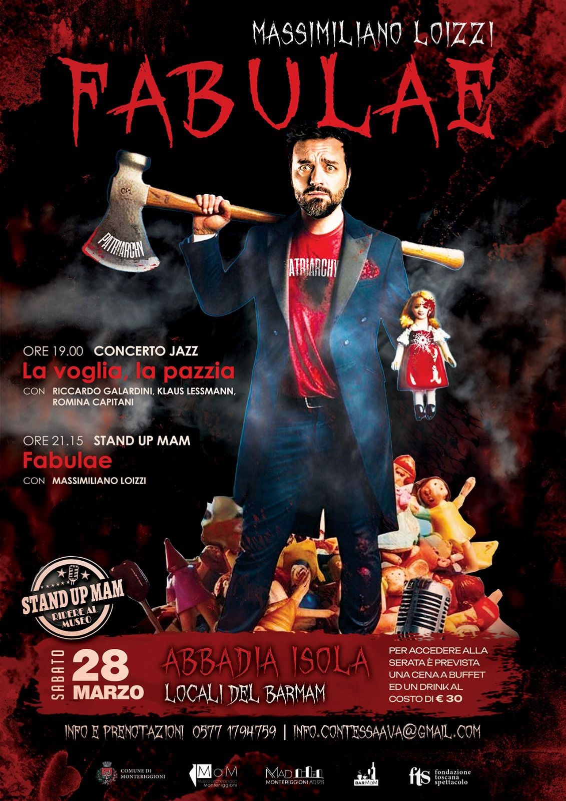 L'ingresso è di 30€ e comprende prenotazione del tavolo, un ricco buffet e un drink. Prenotazione obbligatoria allo 0577 1794759 o scrivendo a info.contessaava@gmail.com.