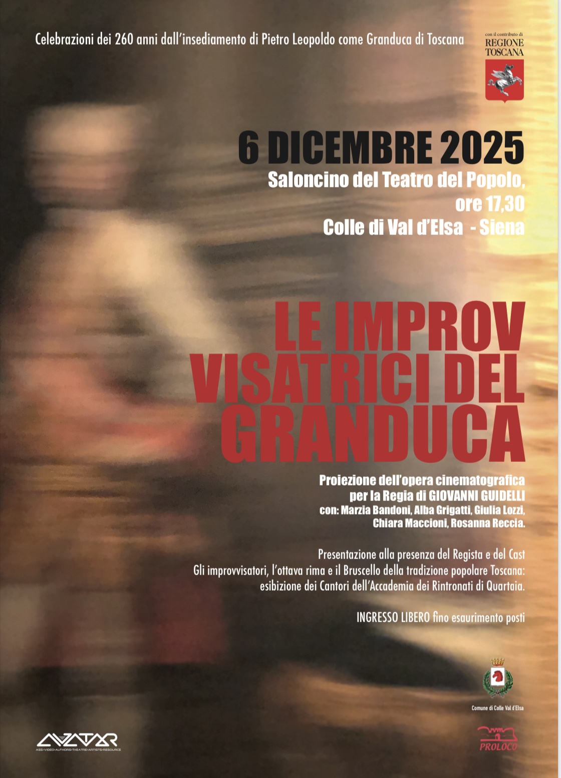Il 6 dicembre, alle ore 17.30, presso il Teatro del Popolo di Colle di Val d'Elsa verrà presentata l'anteprima del cortometraggio dal titolo "Le Improvvisatrici del Granduca", alla presenza del regista e del cast.