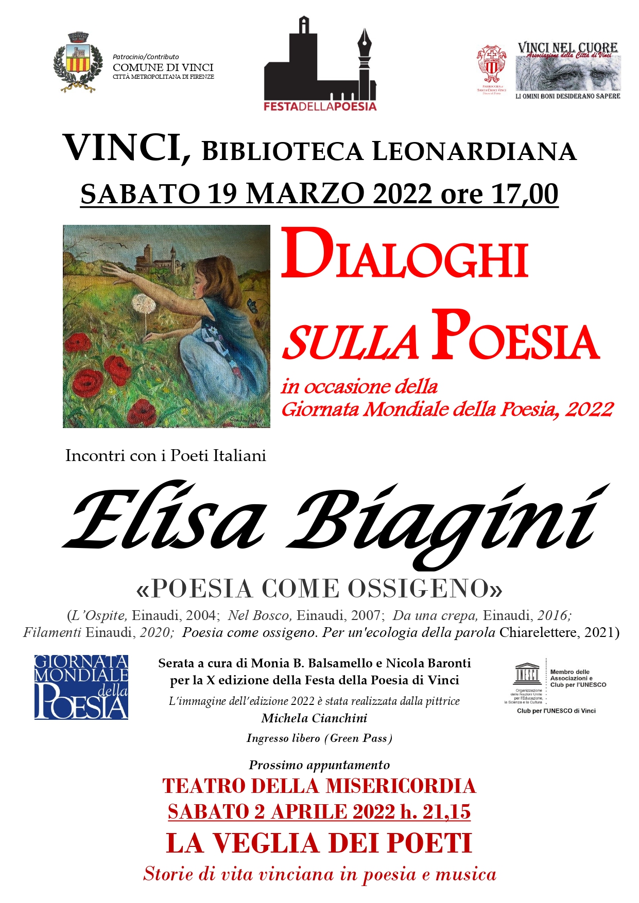 L'edizione 2022 si apre con i Dialoghi della poesia e l'intervento della poetessa Elisa Biagini, protagonista dei più importanti festival letterari in Italia e all'estero.
