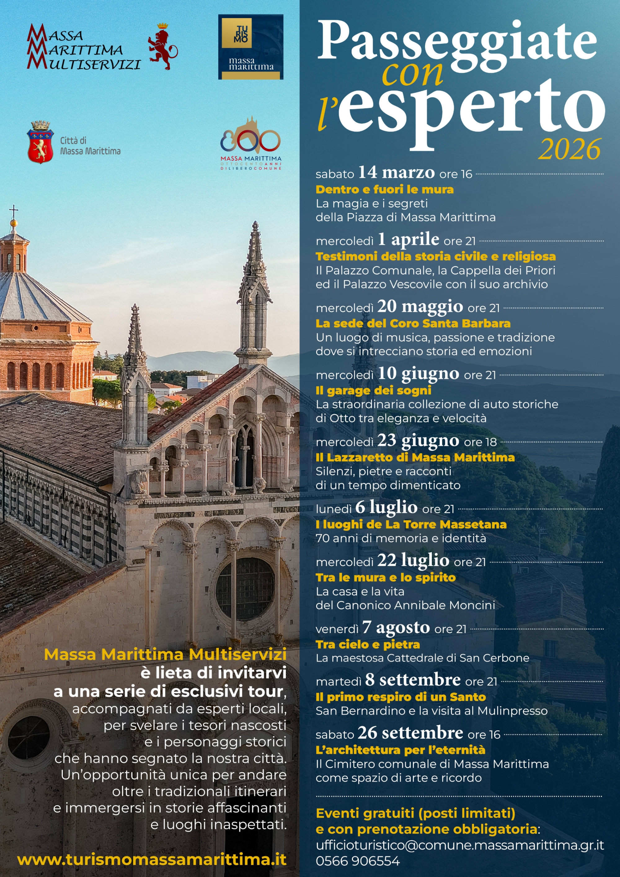 Dopo il positivo riscontro delle precedenti edizioni, prende avvio la terza stagione dell’iniziativa Passeggiate con l’Esperto a Massa Marittima.
