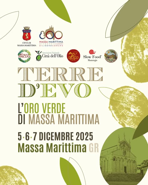 Il Comune di Massa Marittima inaugura la prima edizione di Terre d’Evo - L'Oro Verde di Massa Marittima, una manifestazione nata per celebrare l’olio extravergine di oliva e la cultura che da secoli definisce questo paesaggio rurale.