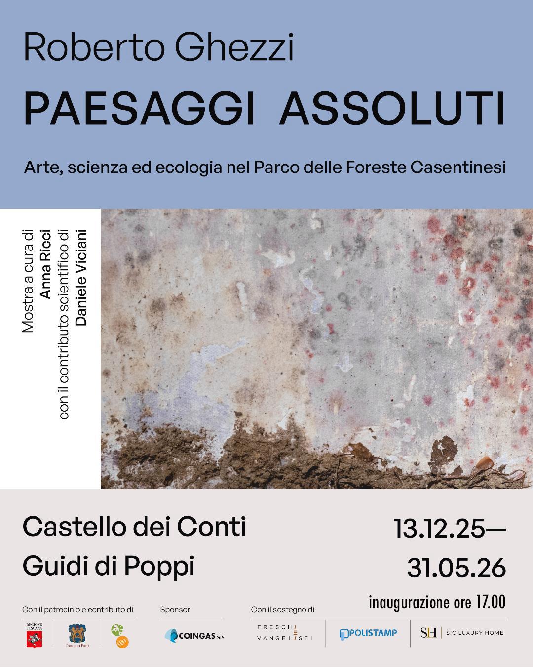 L'artista Roberto Ghezzi è arrivato in Casentino dai luoghi più estremi della Terra, per interagire con le foreste bene dell’Umanità, e allestire la sua mostra intitolata “Paesaggi Assoluti”. L’esposizione al Castello dei Conti Guidi presenta un percorso di ricerca che intreccia arte contemporanea, osservazione scientifica e studio diretto degli ambienti naturali, e resterà aperta al pubblico fino al 31 maggio 2026.
