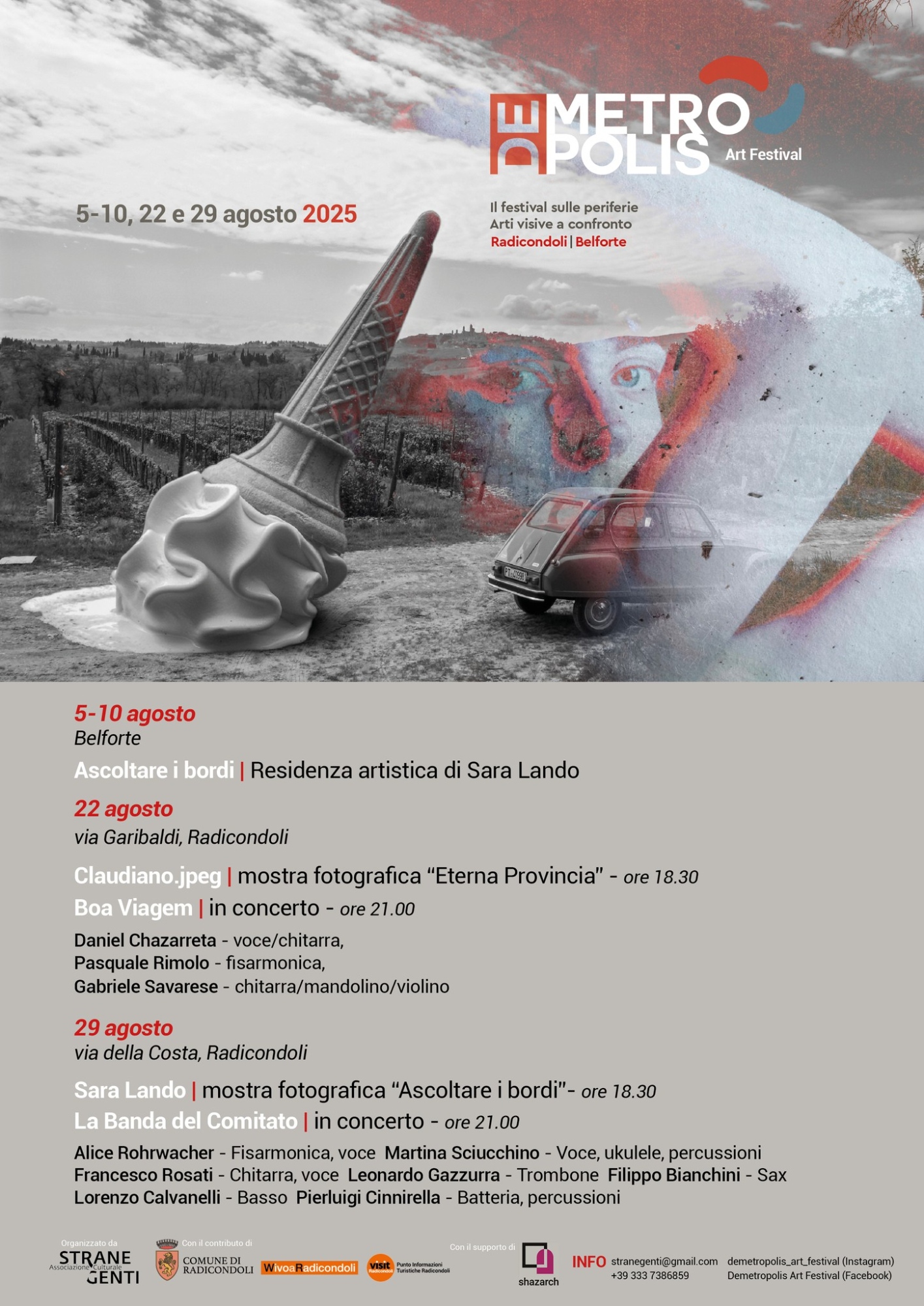 Demetropolis Art Festival, a Belforte e Radicondoli, dal 5 al 29 agosto, è l’appuntamento che porta le arti visive nei margini vivi del territorio, indagando il potenziale creativo delle periferie.