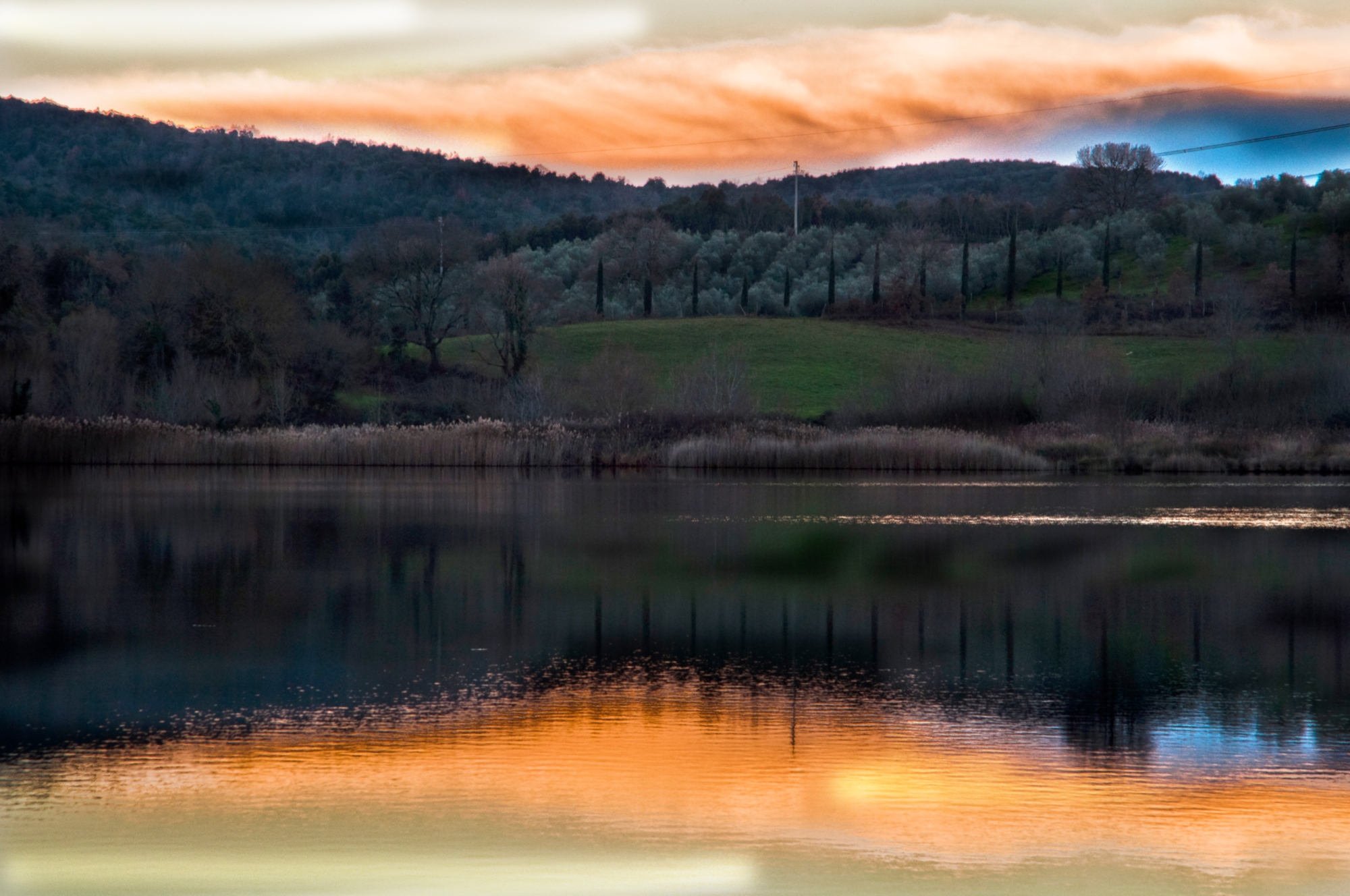 Dopo esattamente 1,1 km si incontra una stradina sulla sinistra evidenziata da un cartello giallo che indica Castel di Pietra. Si consiglia questa breve deviazione (3 + 3 km) verso il castello: si pedala per 2,3 km su una scorrevole sterrata fiancheggiata da cipressi, poi, sulla destra, inizia la salita di 700 m verso la rocca medievale; si lasciano le bici all'inizio del sentiero e si prosegue a piedi. Rimontati in sella, si continua al bivio seguendo l'indicazione per il Lago dell'Accesa.