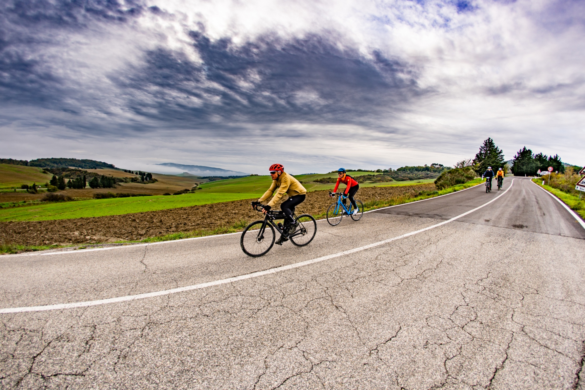 Entriamo quindi nel territorio delle Crete Senesi, il regno dello sterrato. Si incrociano qui una serie di itinerari diventati iconici per gli appassionati del Gravel, come l’Eroica o le Strade Bianche. Il nostro percorso ci porta sino a Buonconvento, dove abbandoniamo la direttrice nord/sud per piegare decisamente verso est. Il percorso continua sino a Sinalunga e Cortona, sfiorando a nord il lago Trasimeno, per uscire infine dalla regione Toscana e proseguire verso l’Umbria e le Marche.