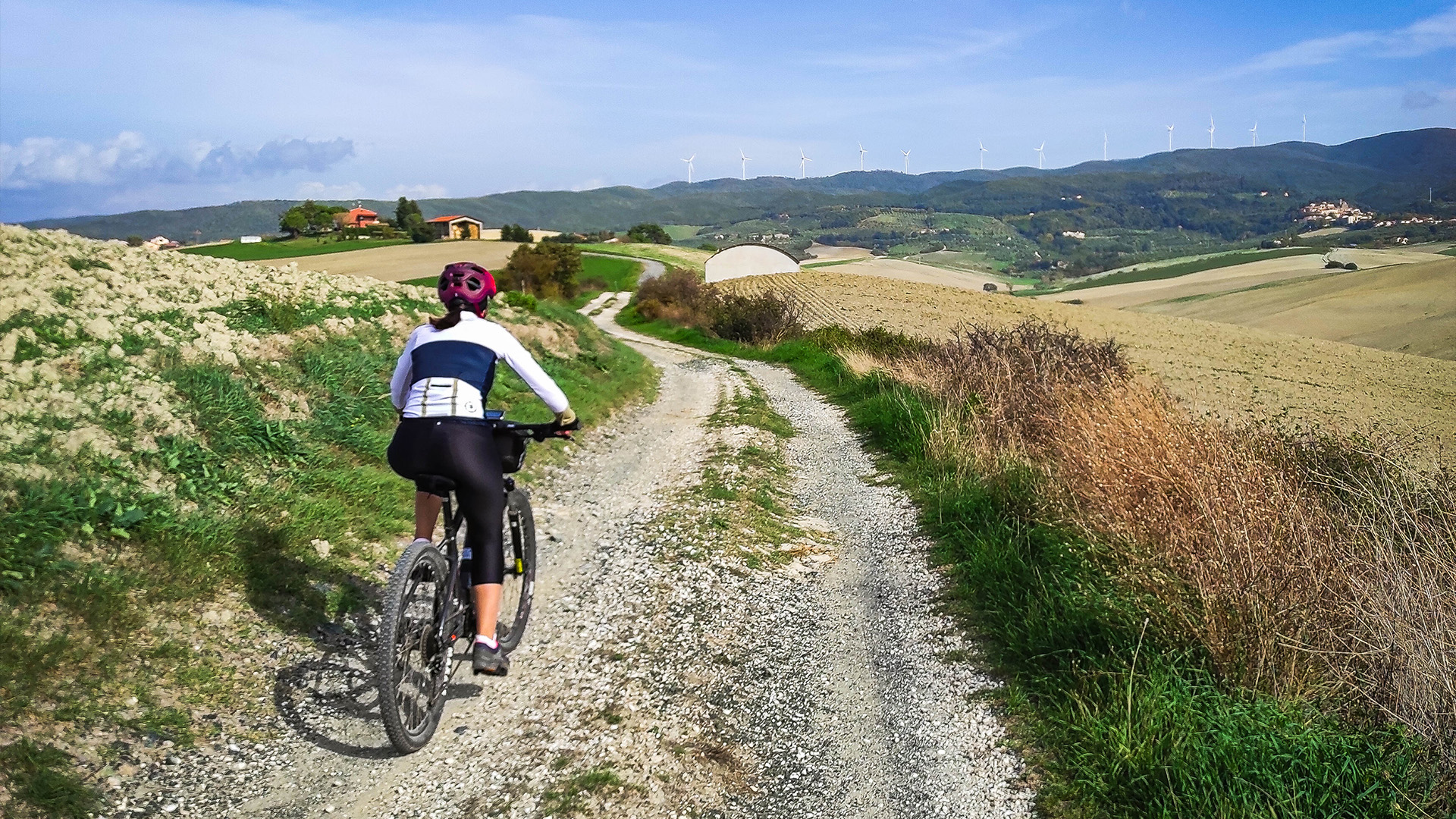 Pedalando con le nostre e-bike tra questo sinuoso paesaggio toscano, respirerai pace e tranquillità. Non a caso proprio qui, nella frazione di Pomaia, sorge un famoso centro buddhista: l’istituto Lama Tzong Khapa.