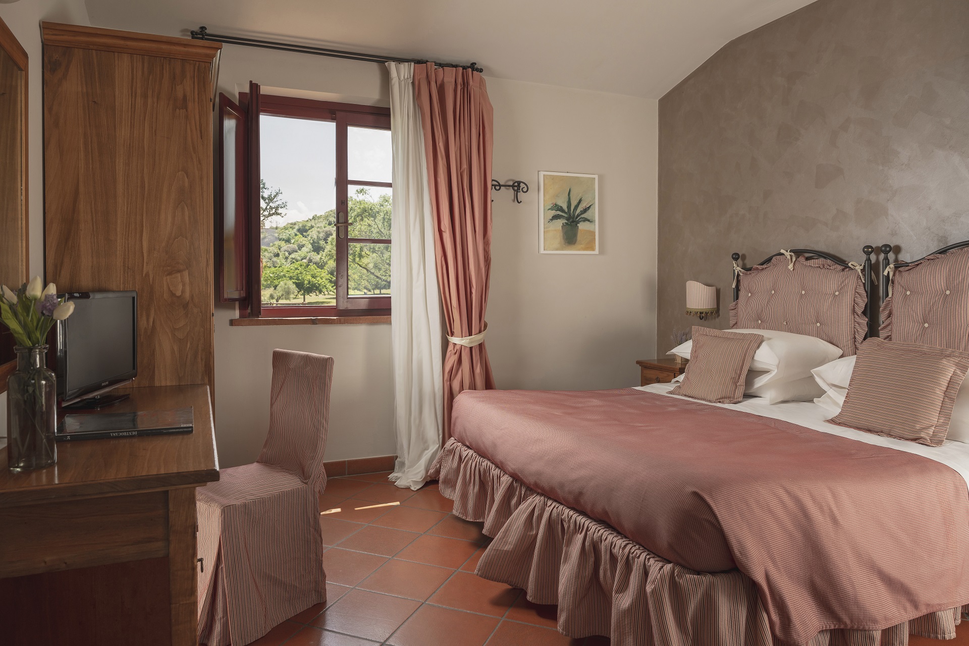 Ti aspetta un parco di 4 ettari che curiamo con passione, dove potrai rilassarti all'ombra di olivi, cipressi e alberi da frutto e rinfrescarti nella grande piscina a sfioro. A cena, all’Hostaria Le Terre Rosse, lo chef Maurizio Cambi ti delizierà con primi della tradizione toscana creati con i migliori ingredienti locali.