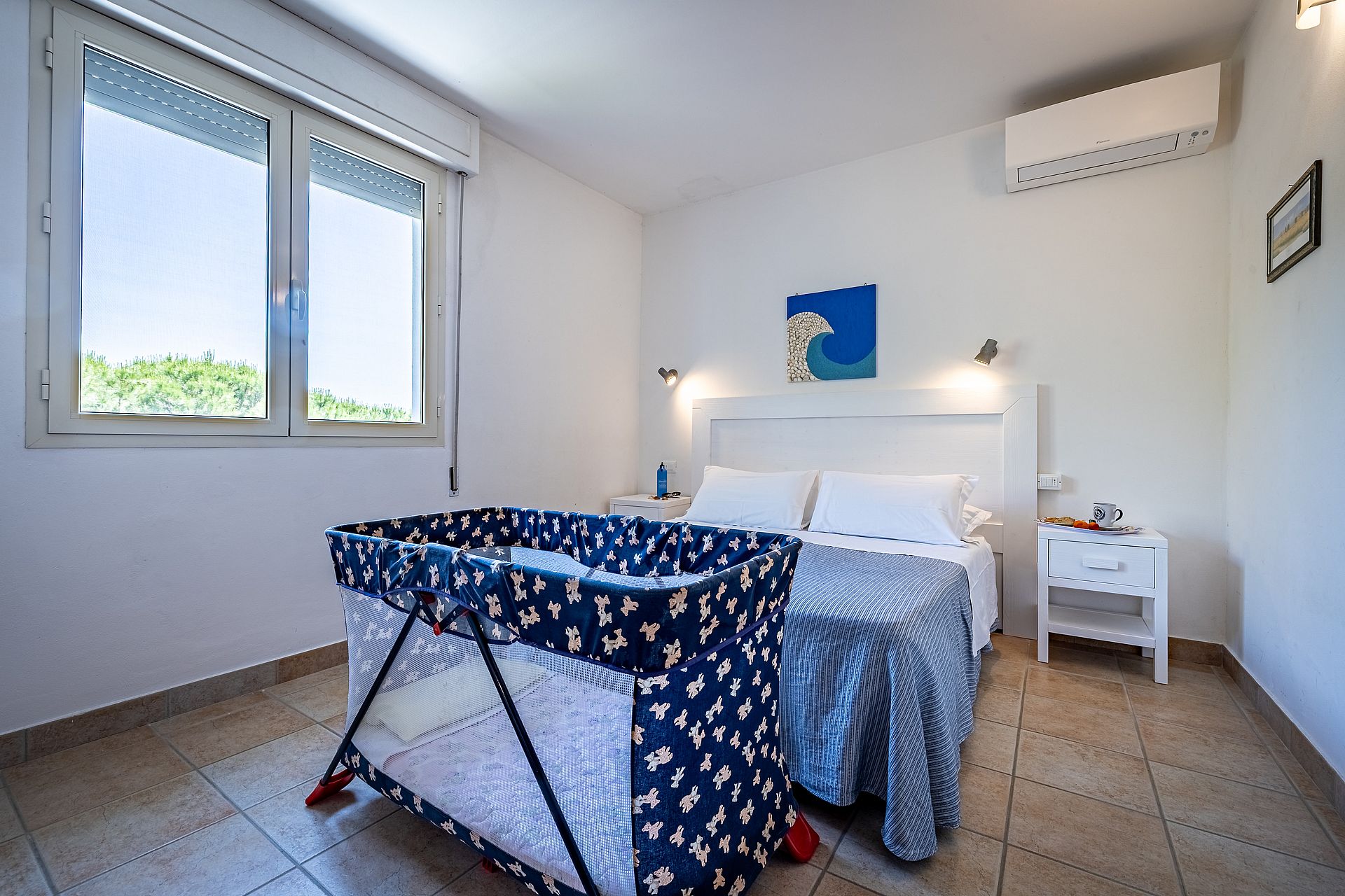 L'appartamento è dotato di angolo cottura attrezzato, biancheria da letto e da bagno, climatizzazione, zanzariere, Wi-Fi e per i neonati sotto 1 anno di età troverete gratuitamente lettino, seggiolone, vasino, vaschetta da bagno. Si trova all'interno di una residenza alberghiera gestita direttamente dai proprietari, presenti sul posto per ogni necessità.