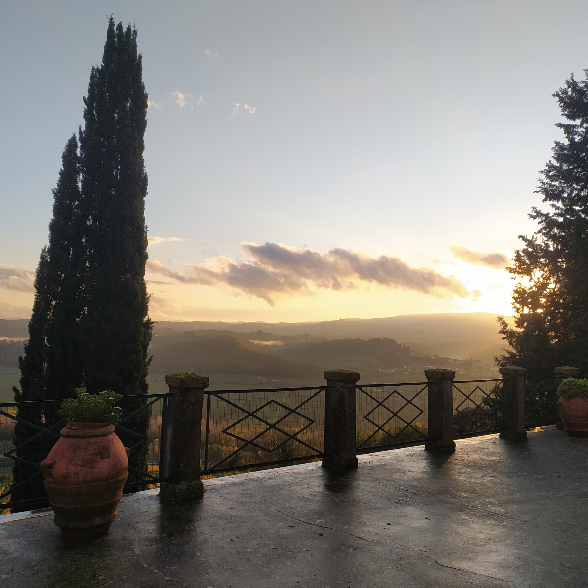 A seguire, visita alle cantine e spiegazione dei processi di vinificazione e del concept enologico e culturale della Fattoria Majnoni Guicciardini. Avrai l'opportunità di ammirare il paesaggio circostante sulla terrazza panoramica dell'agriturismo, di fronte a San Gimignano.